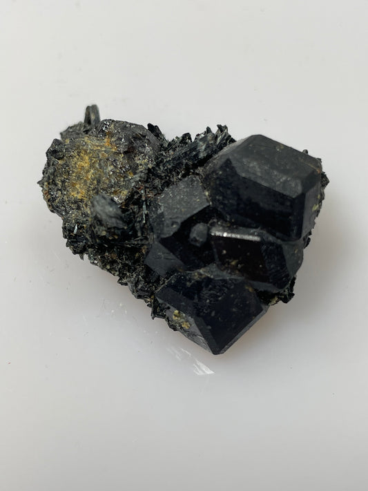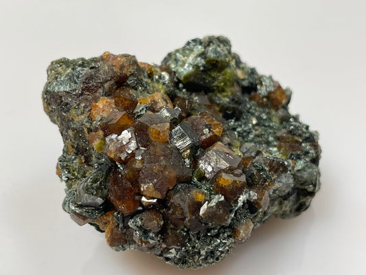 Grenat sur Clinochlore et Epidote, Bendougou, région de Kayes, Mali.