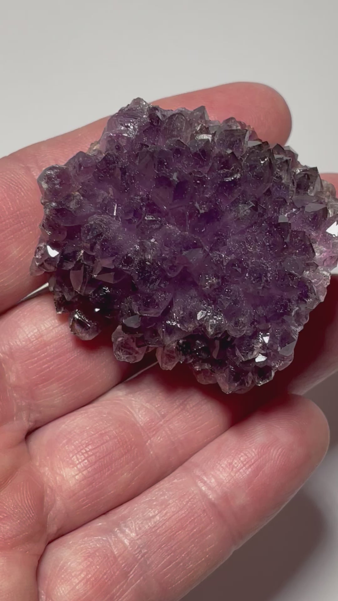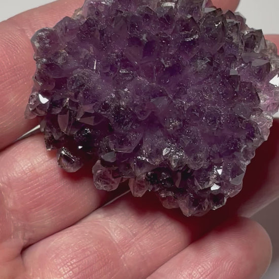 La particularité des Améthystes provenant de la Mine Alacam en Turquie est d’être formée de petits cristaux très brillants et à la couleur violette très intense.