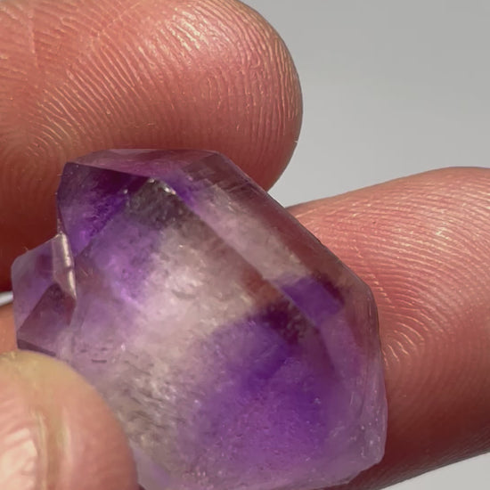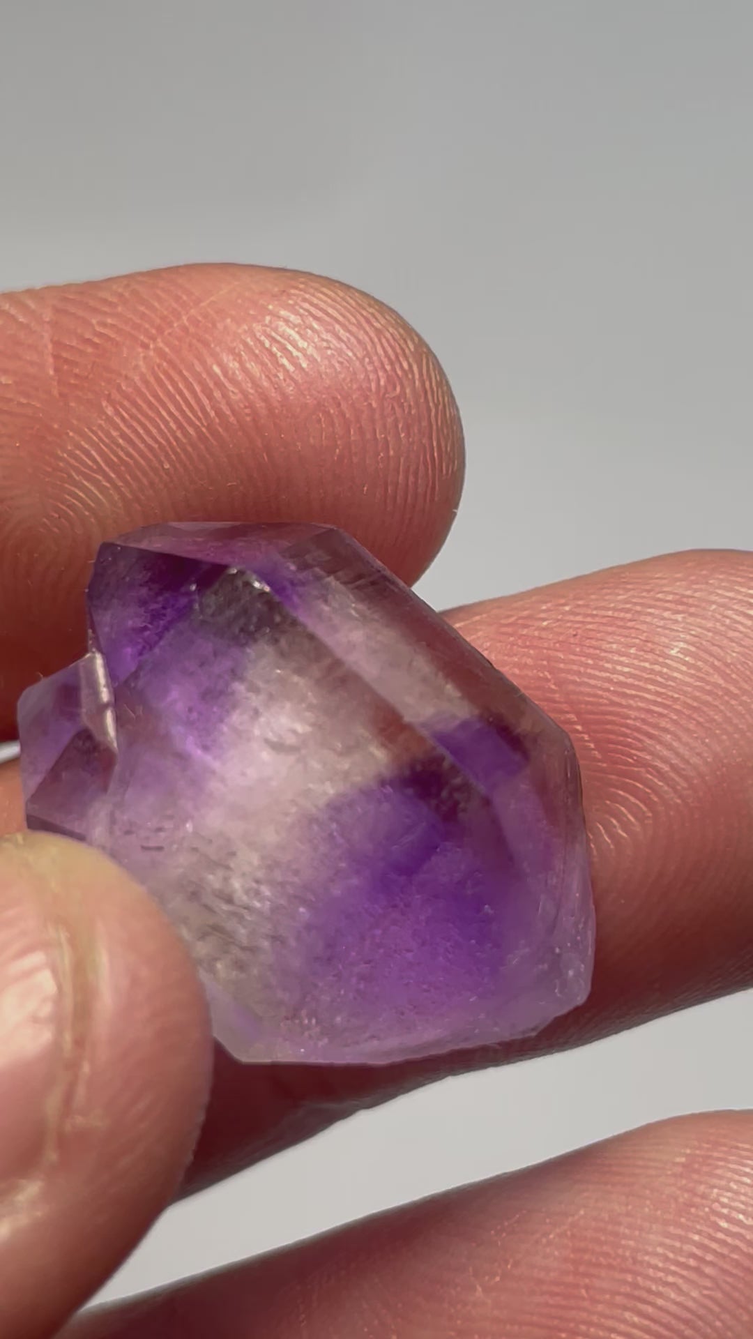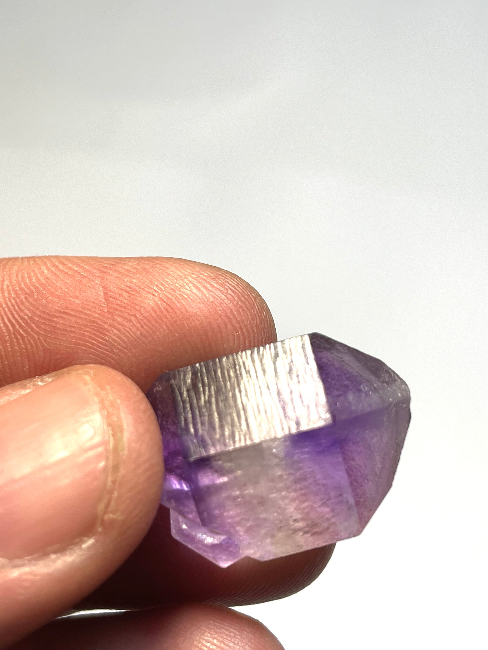 Les améthystes de Tata ont la particularité d’être bicolores (très tranparente, icolore sur une partie du cristal, avec un fantôme violet intense près de la/des pointe(s).