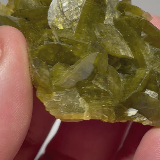 Sa couleur entre le brun, le jaune et le vert est typique, ainsi que sa cristalisation Rhomboédrique. Sa dureté est de 3,5 à 4,5 sur l’échelle de Mohs.